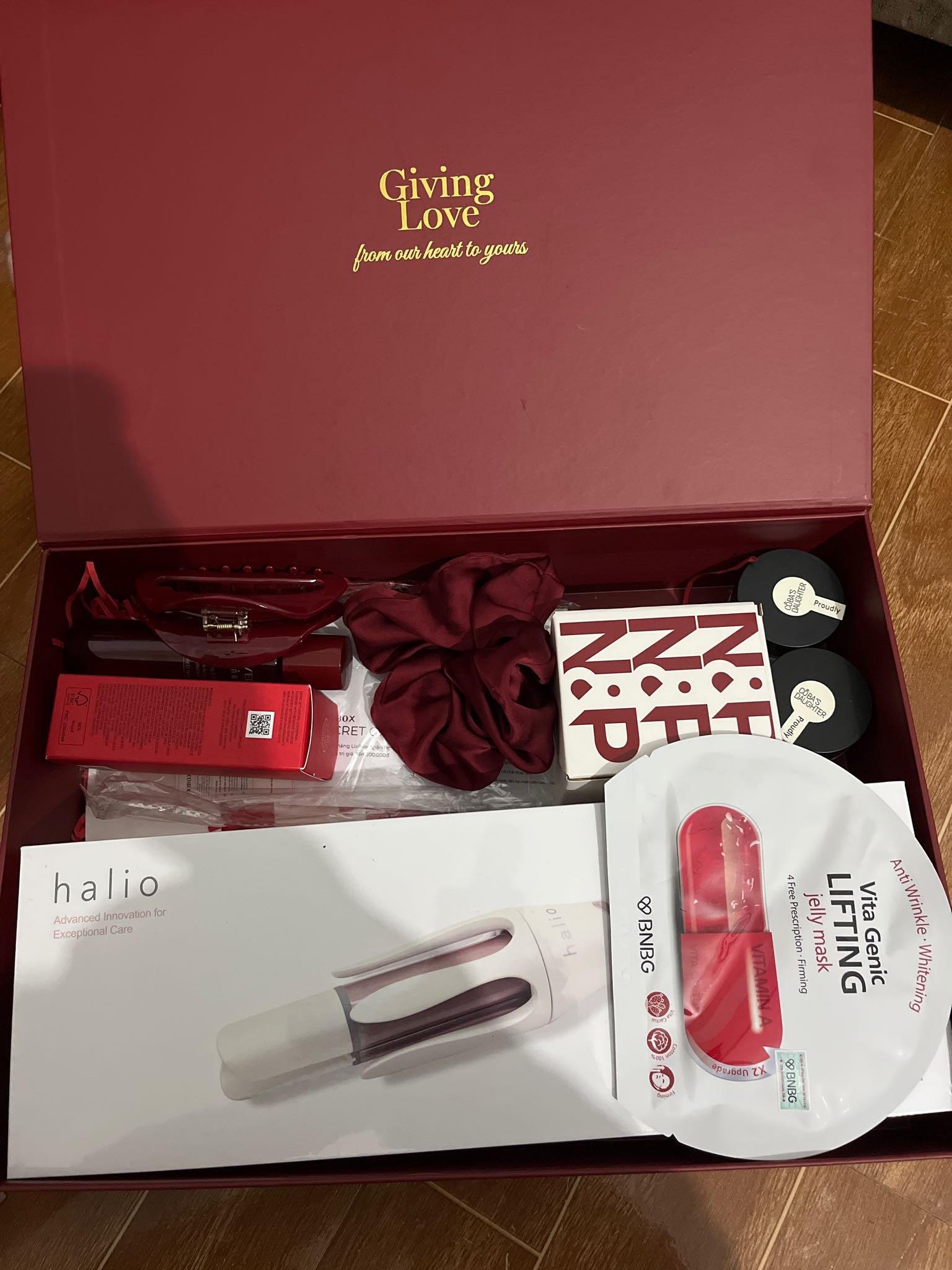 Hộp Quà GWP Lixibox Giving Love hong có chai nước quaa body&hair nhưng mà shop bù lại mặt nạ và đá massa.