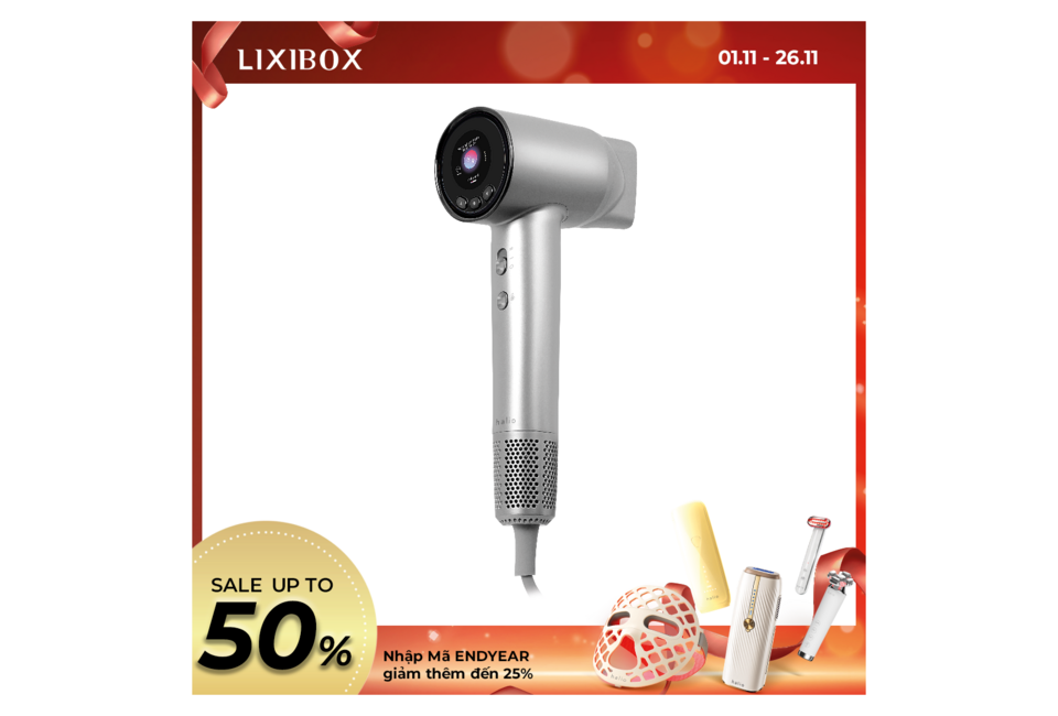 Máy Sấy Tóc Ion Âm Halio Hypersonic Hair Dryer Silver Frost