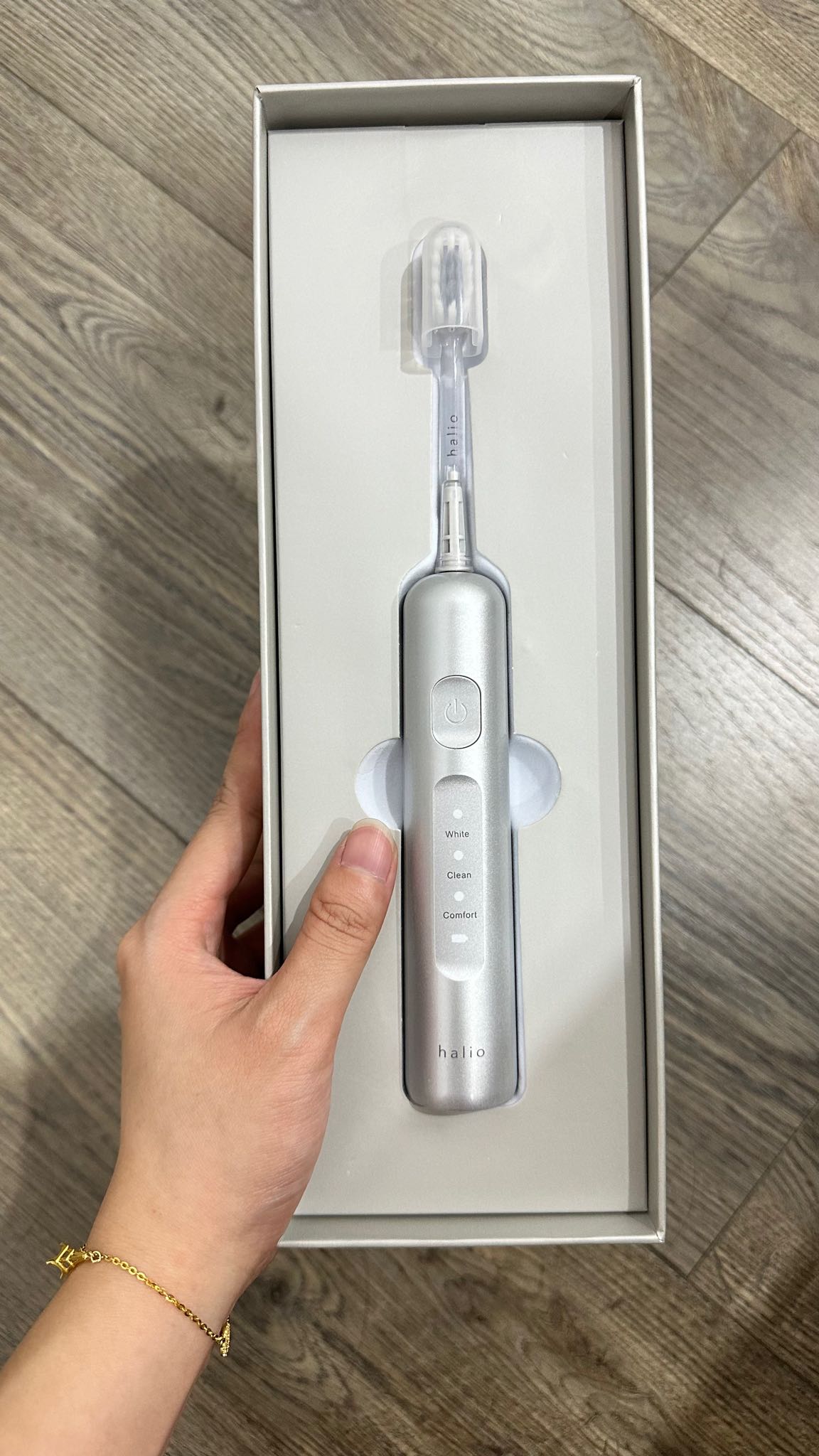 Bàn chải điện tích hợp công nghệ chuyển động kép Halio Wave Sonic Electric Toothbrush - Silver Frost màu bling bling xinh xinh, mạnh.