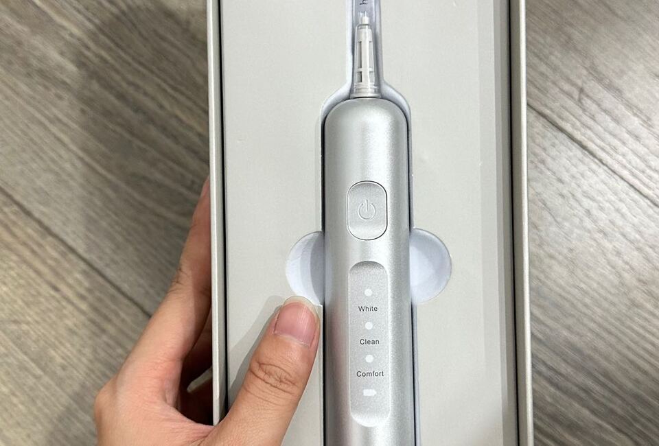 Cách sử dụng Làm ướt đầu bàn chải Lấy kem đánh răng cỡ hạt đậu lên đầu bàn chải Chia hàm răng thành góc phần tư trên, dưới, phải, trái, giữ bàn chải ở một góc 45 độ với đường viền nướu, nhẹ nhàng di chuyển từ bề mặt ngoài rồi đi sâu vào vào bề mặt trong răng Hãy để đầu bàn chải vào miệng trước khi khởi động để tránh làm văng kem đánh răng Nhấn nhẹ nút nguồn để bật bàn chải điện và chọn chế độ làm sạch phù hợp: + Chế độ White: Làm trắng răng, loại bỏ mảng bám cứng đầu + Chế độ Clean: Phù hợp làm sạch hàng ngày + Chế độ Comfort: Độ rung vừa phải, phù hợp với người có răng nướu nhạy cảm Cứ sau 30s máy sẽ ngắt khoảng 0.5-1s để nhắc chuyển khu vực chải răng. Sau 2 phút máy sẽ tự động tắt Súc miệng lại với nước sạch Vệ sinh bàn chải lại bằng nước sạch, để tại nơi khô ráo
