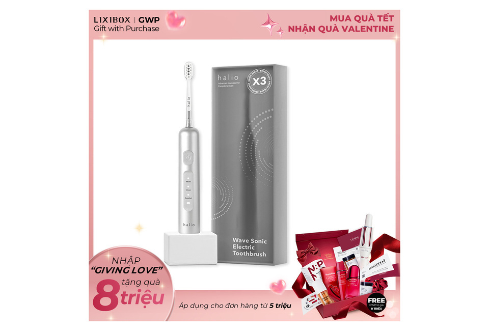 Bàn chải điện tích hợp công nghệ chuyển động kép Halio Wave Sonic Electric Toothbrush - Silver Frost màu bling bling xinh xinh, mạnh.