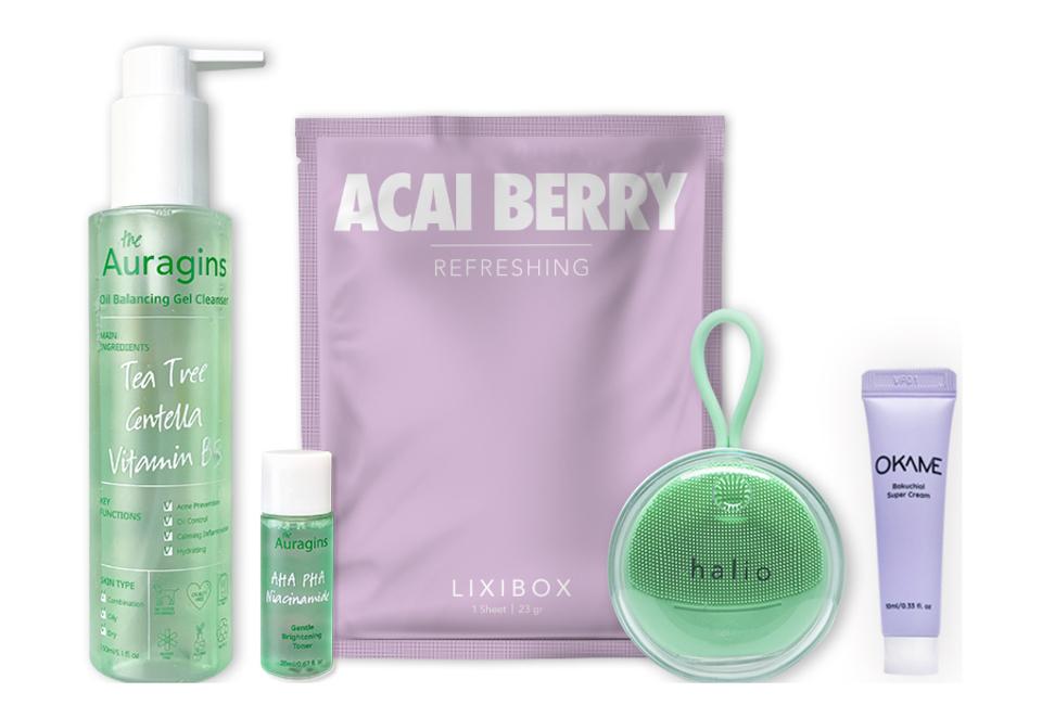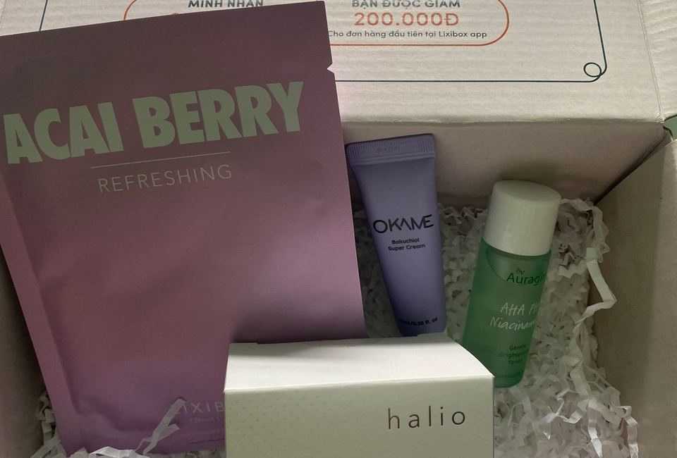 Box Chăm Sóc Da Nhạy Cảm Sensitive Skin Previlage gồm có: 01 Kem Dưỡng Ẩm Okame Bakuchiol Super Cream 10ml 01 Máy rửa mặt dành cho da nhạy cảm Halio Sensitive Facial Cleansing & Massaging Device Sweet Mint 01 Sữa Rửa Mặt Dành Cho Da Dầu Mụn The Auragins Oil Balancing Gel Cleanser