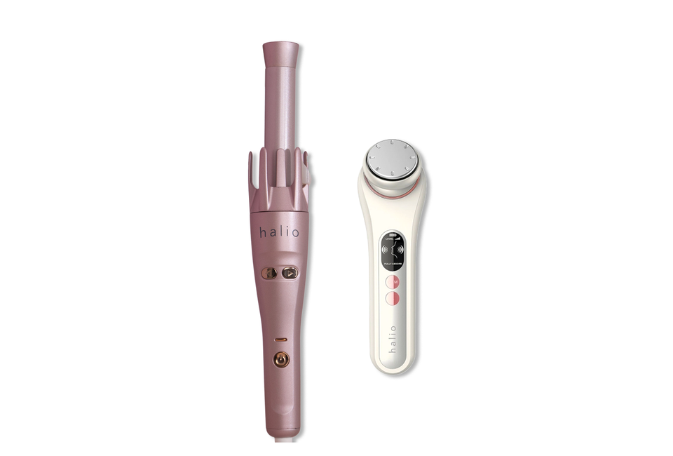 Box Máy Uốn Tóc Halio Auto Rotating và Máy Chăm Sóc Da Mặt Halio Hot & Cool Beauty Bliss Kit - Rose Gold & White