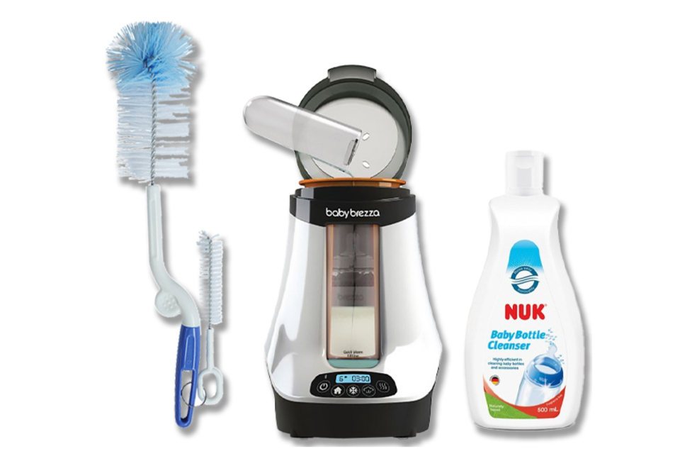 Box Phụ Kiện Uống Sữa bao gồm: 1. Máy Hâm Sữa Baby Brezza Safe Smart Baby Bottle Warmer Chính Hãng 2. Nước Rửa Bình Sữa Nuk Chai 500ml 3. Cây Xúc Rửa Bình Sữa Và Núm Vú 2in1 Pigeon