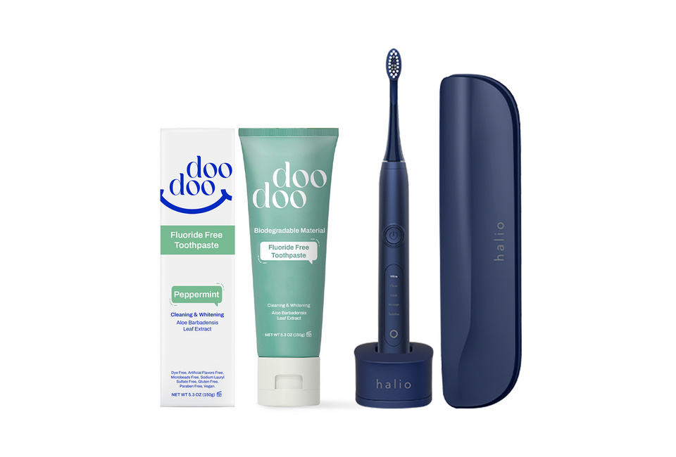 Combo Chăm sóc răng miệng - Midnight gồm: Bàn Chải Điện Làm Trắng Răng Halio Sonic Whitening Electric Toothbrush PRO MidnightKem Đánh Răng Doodoo Fluoride Free Toothpaste Làm Trắng Răng 150g Peppermint