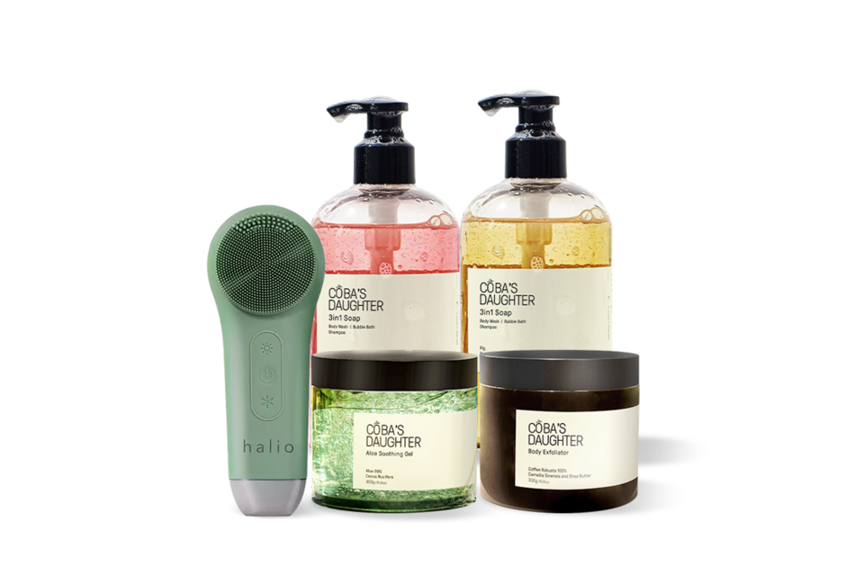 Combo Combo chăm da toàn diện Head-to-Toe Oasis Box -Sage Green gồm: Máy Rửa Mặt Massage Tích Hợp Liệu Pháp Ánh Sáng và Nhiệt Halio Multi-task Cleansing & Massaging Device with Red Blue Light Therapy 5 in 1 - Sage Green Gel Tắm 3in1 CoBa's Daughter 3in1 Bodywash, Shampoo and Bubb