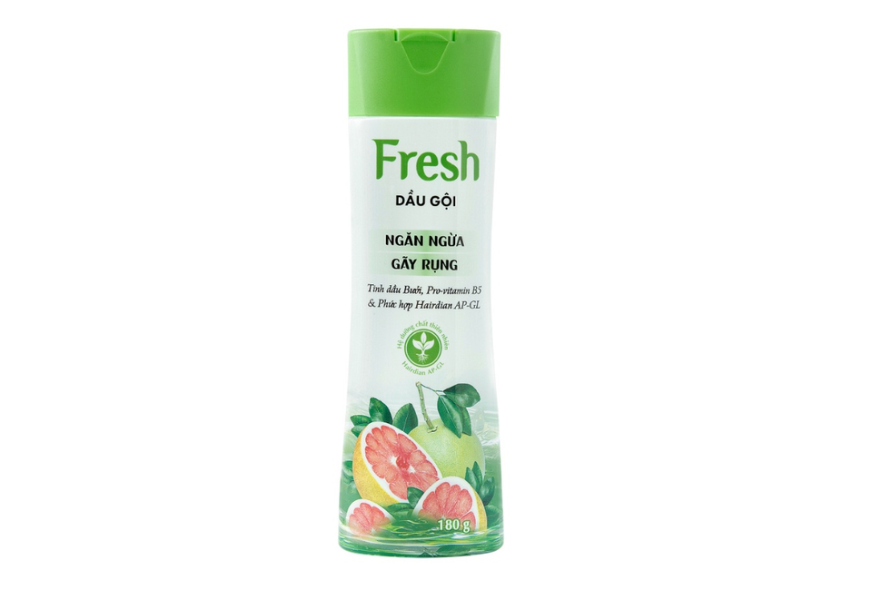 Dầu gội Fresh Ngăn Ngừa Gãy Rụng 180g chứa tinh dầu bưởi hồng ngọc VitC GẤP 3 LẦN Bưởi thông thường Đặc biệt, màu đỏ Ruby chứa Lycopene chống lại sự lão hoá của tuổi tác dành cho tóc. Với tinh chất PRO-V B5: + Thần dược cho tóc giảm gãy rụng + Bổ sung dinh dưỡng cho tóc + Kích th