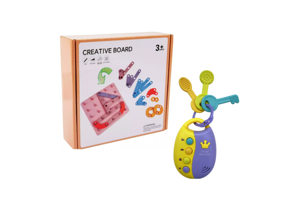 Đồ Chơi Gỗ Ghép Hình Creative Shape Puzzle + Đồ Chơi Móc Khóa Kết Hợp Âm Thanh Huanger Smart Remote