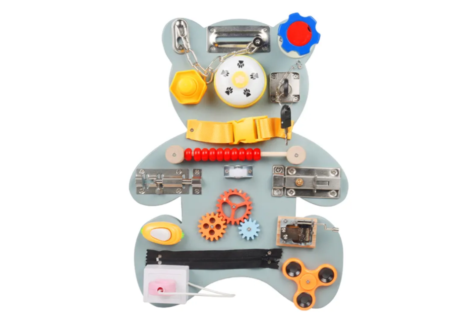 Đồ Chơi Gỗ Giáo Dục Wooden Bear Busy Board Kids Early Learning Locking Game