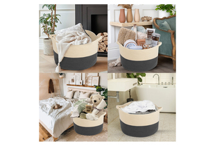 Giỏ Đan Cotton homeart Ingrid Có Tay Cầm Màu Be Xám L