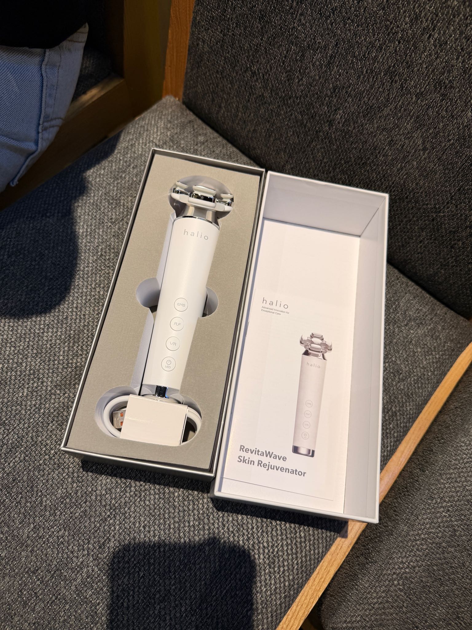 01 Máy Nâng Cơ, Giảm Mỡ Mặt & Trẻ Hoá Da kết hợp Ánh Sáng Sinh Học Halio RevitaWave Skin Rejuvenator 01 Dây sạc Type-C 01 Hướng dẫn sử dụng