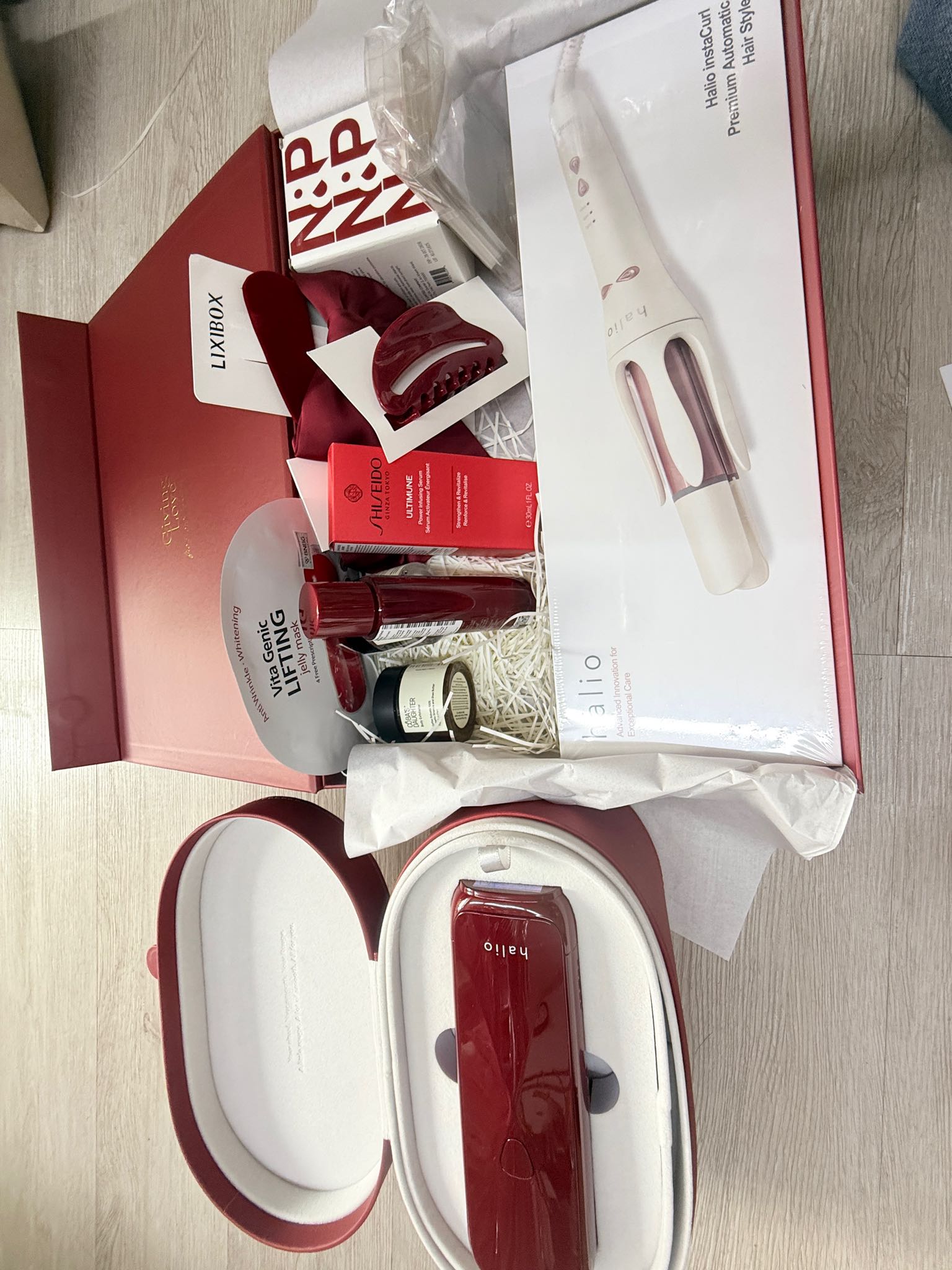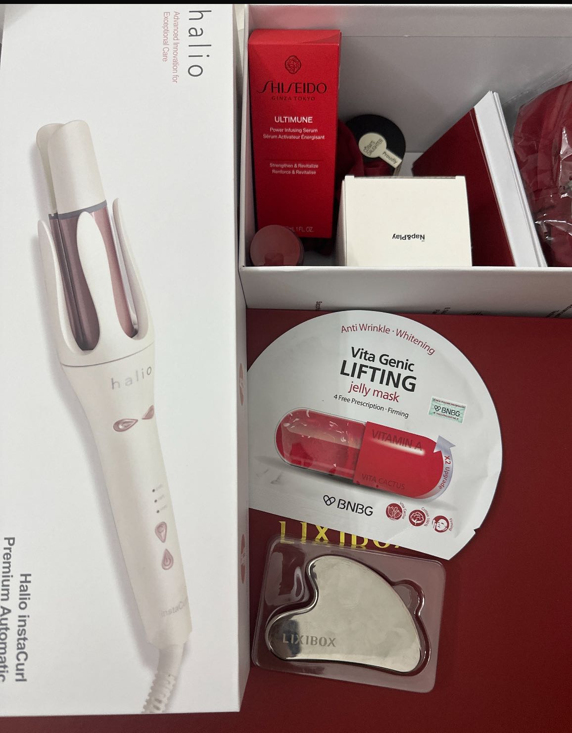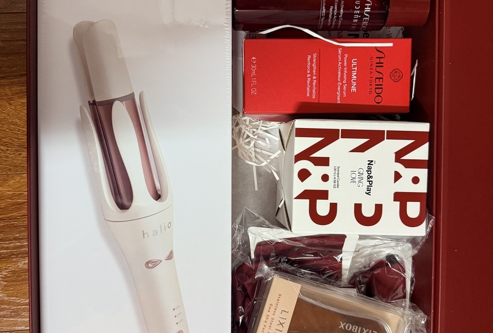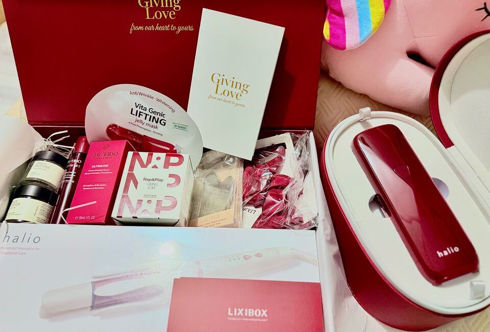 Giving Love – From our heart to yours” ------------------ 1. Máy Uốn Tóc Tự Xoay Ion Âm Halio InstaCurl Premium - Pearl White 2. Tinh Chất Shiseido Ultimune Power Infusing 30mL 3. Nước Thần Shiseido Eudermine 70ml 4. Gel Dưỡng Da nha đam hương dừa CoBa’s Daughter Aloe Soothing Gel 70gr 5. Tẩy Tế Bào Chết Toàn Thân Hương Trà Xanh CoBa’s Daughter Body Exfoliator 70gr 6,7,8,9. Bộ 4 Phụ Kiện Tóc Lixibox Rouge Hair Accessory Set 10. Nến Thơm Take Nap&Play Giving Love Candle 130g 11. Nước xịt thơm tóc & toàn thân Lixibox Hair & Body Fragrance Mist - Twilight Cedar 75ml 12. Voucher GWP LIXIBOX 13. Phiếu Quà Tặng Tại Cửa Hàng. "Quà có thể thay đổi theo từng thời điểm”