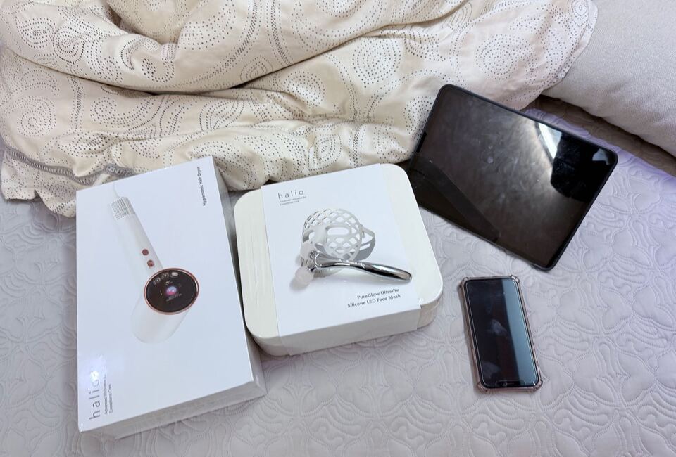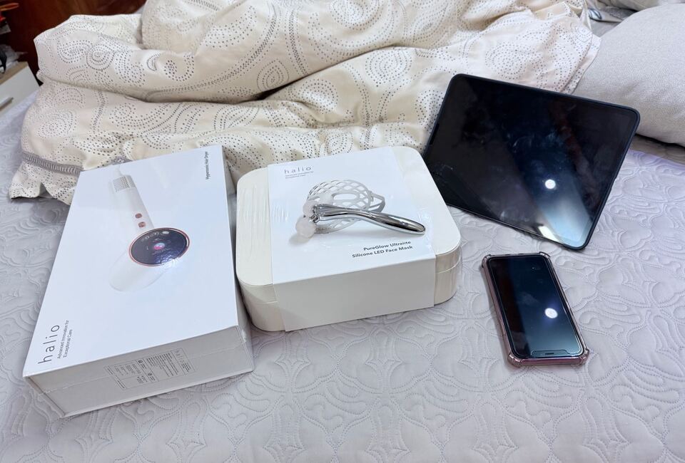 Mặt Nạ Ánh Sáng Sinh Học Halio PureGlow Ultralite Silicone LED Face Mask tặng Máy Sấy Tóc Halio Hypersonic - Silver Frost gồm 2 sản phẩm: Mặt Nạ Ánh Sáng Sinh Học Halio PureGlow Ultralite Silicone LED Face Mask Máy Sấy Tóc Halio Hypersonic - Pearl White
