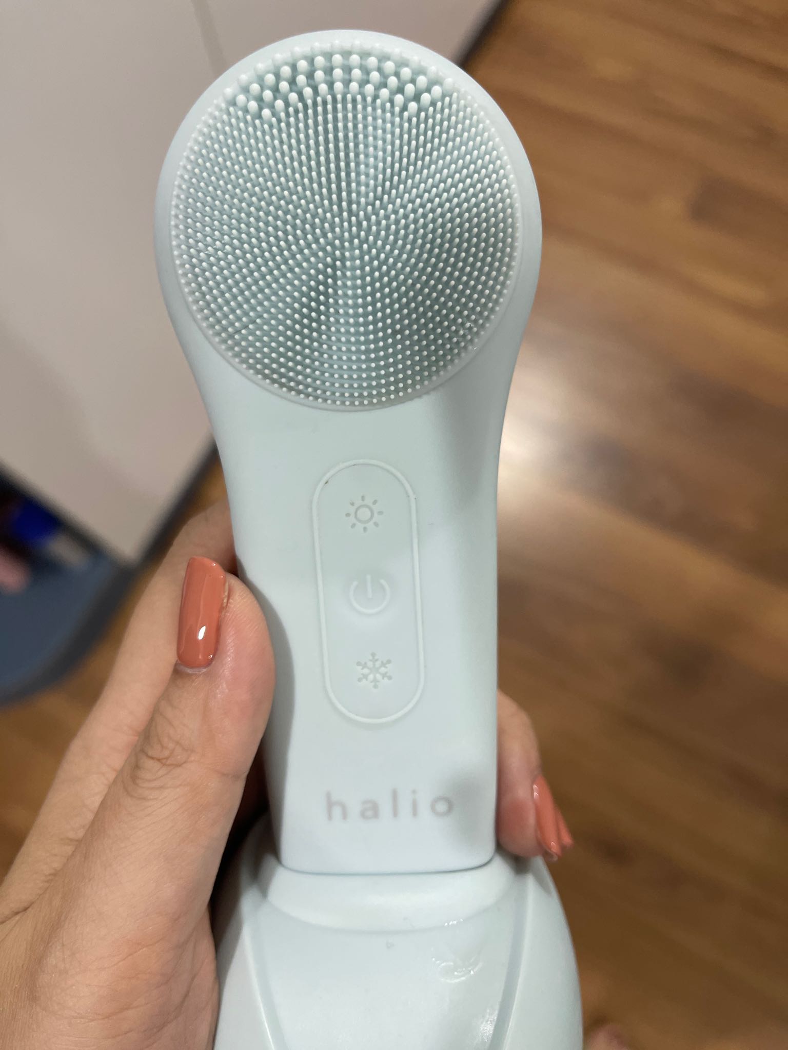 Cần tránh dùng sữa rửa mặt hoặc tẩy tế bào chết dạng hạt scrub vì có thể làm trầy xước, hư hỏng sợi lông Silicone của máy.