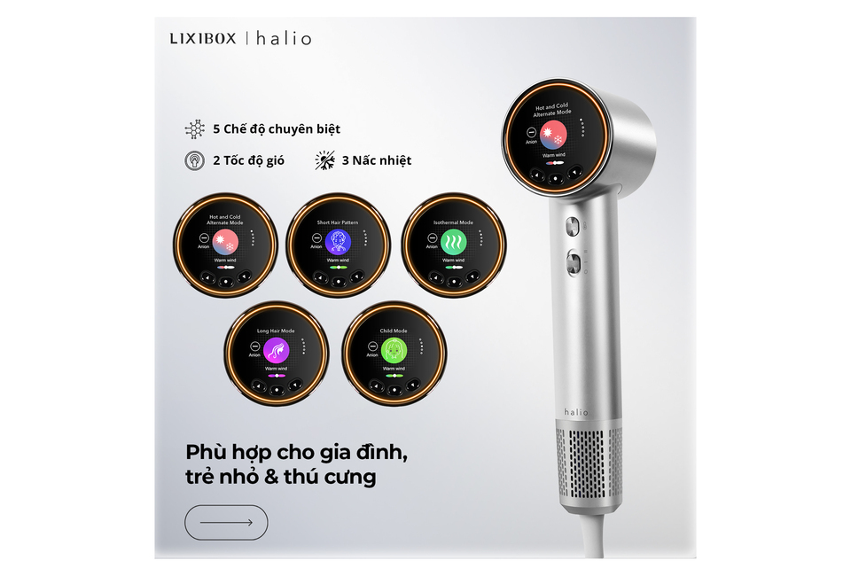 Máy Sấy Tóc Ion Âm Halio Hypersonic Hair Dryer Silver Frost