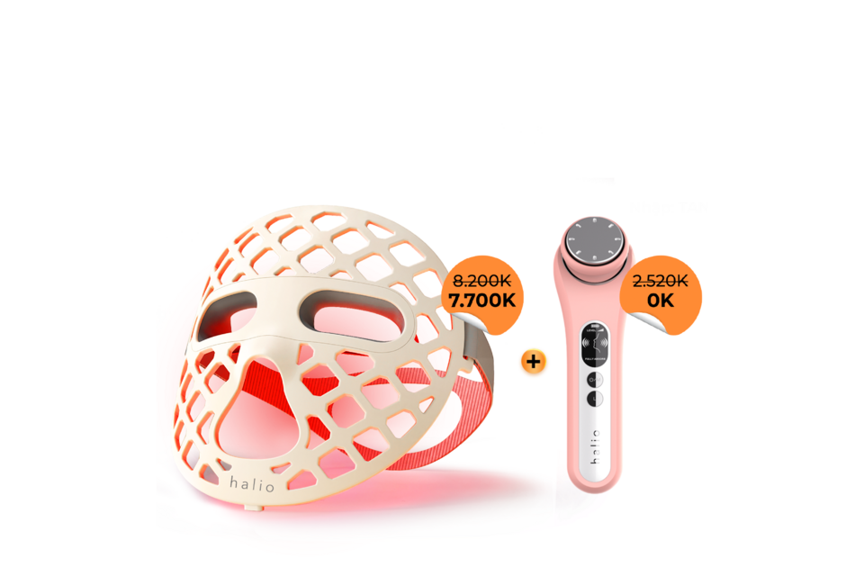 [MUA 2 TÍNH 1] Mặt Nạ Ánh Sáng Sinh Học Halio PureGlow Ultralite Silicone LED Face Mask tặng Máy Massage Nóng Lạnh Đẩy Tinh Chất Halio