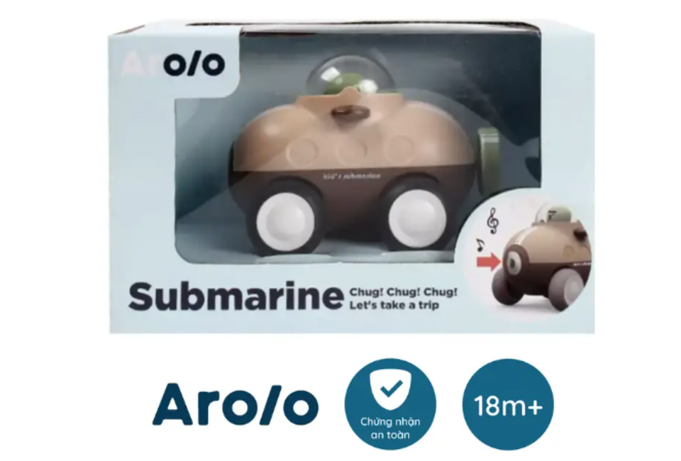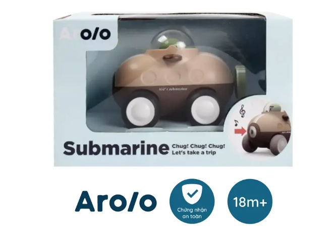Xe Đồ Chơi Mô Hình Có Đèn Nhạc Arolo Submarine có đèn nhạc với thiết kế là một chiếc tàu ngầm nhỏ nhắn, đáng yêu, giúp bé phát triển các kỹ năng vận động nhẹ nhàng. Đặc biệt xe còn có đèn sáng và nhạc giúp t