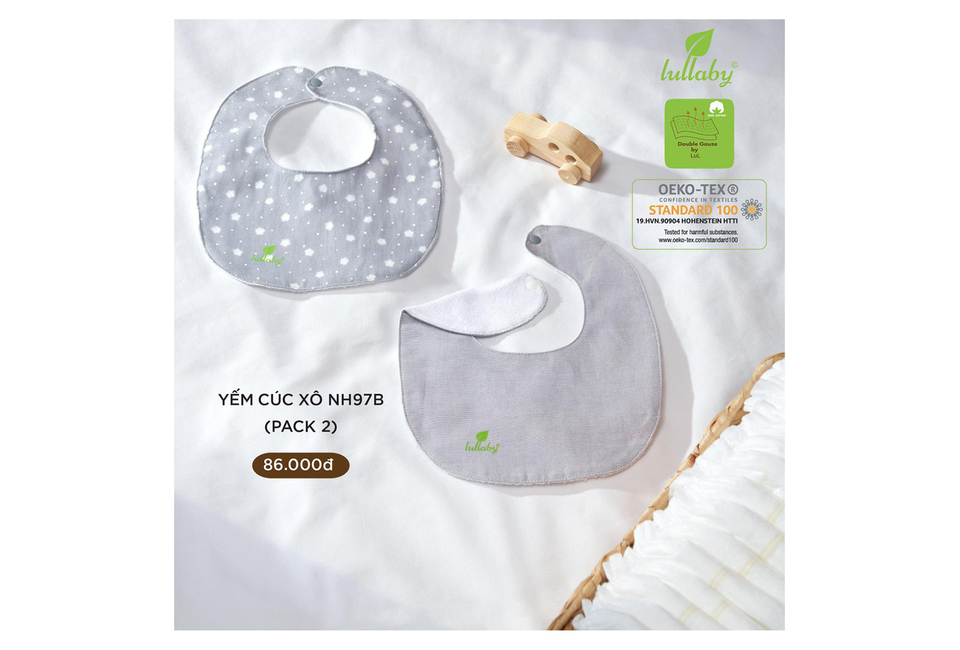 Yếm Cúc Bấm Vải Xô Cho Bé Lullaby Màu Ghi